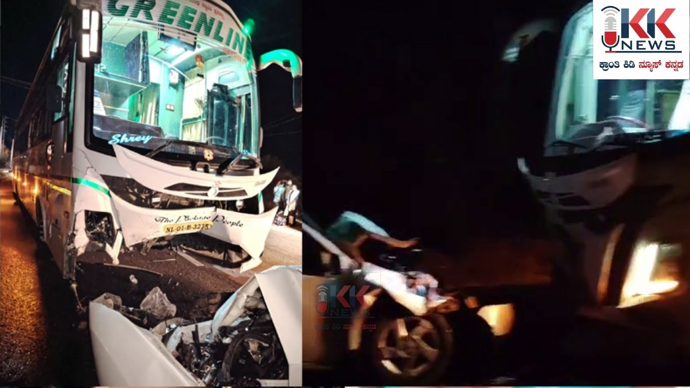 ಖಾಸಗಿ ಬಸ್ ಹಾಗೂ ಕಾರಿನ ನಡುವೆ ಮುಖಾಮುಖಿ ಡಿಕ್ಕಿ ಸಂಭವಿಸಿದ್ದು, ಡಿಕ್ಕಿ ರಭಸಕ್ಕೆ ಕಾರು ಸಂಪೂರ್ಣ ನಜ್ಜುಗುಜ್ಜಾಗಿದೆ, ಬೆಂಕಿ ಕೂಡ ಹೊತ್ತಿಕೊಂಡಿದೆ. ಈ ವೇಳೆ ಬೆಂಕಿ ಹಾರಿಸಿದ ಬಸ್ನ ಪ್ರಯಾಣಿಕರು ಗಾಯಗೊಂಡ ಕಾರು ಚಾಲಕನನ್ನು ಆಸ್ಪತ್ರೆಗೆ ಸಾಗಿಸಿದ್ದಾರೆ.