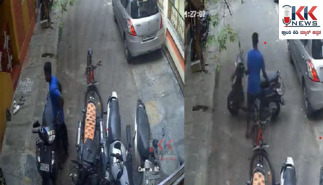 ಹ್ಯಾಂಡಲ್ ಲಾಕ್ ಕೂಡ ಮಾಡದೆ ಬೈಕ್ ಮೇಲೆಯೇ ಕೀ ಇರುವುದನ್ನು ಗಮನಿಸಿದ ಕಳ್ಳ, ಅಕ್ಕಪಕ್ಕದಲ್ಲಿ ಯಾರೂ ಇಲ್ಲದ ಸಮಯ ನೋಡಿ ನಿರಾಯಾಸವಾಗಿ ಬೈಕ್ ಸ್ಟಾರ್ಟ್ ಮಾಡಿ ಅಲ್ಲಿಂದ ಪರಾರಿಯಾಗಿದ್ದಾನೆ.